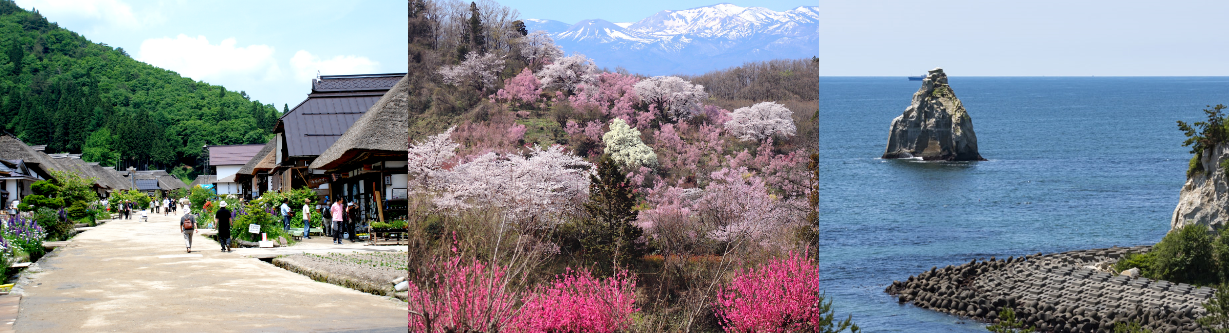 会津地方は、あの有名な磐梯山があり、猪苗代湖や尾瀬などの豊かな自然環境が広がります。歴史・文化の町でもあり、冬は雪が多いのでウィンタースポーツなどが盛んです。